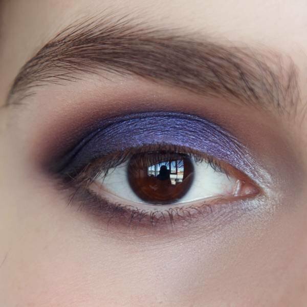 Step 3: Apply Purple Shadows Choose purple or dark lilac shades with a pearly shimmer. They must be applied to the moving eyelid, including a highlighted dark corner. Shade carefully shade.