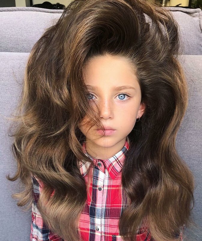 Today he makes amazing hairstyles not only for adult models, but also for young women of fashion, turning from hair into a huge sheaf of shining hair. Among his little clients are girls who already have tens of thousands of subscribers on the network. And here are some of them: