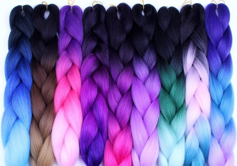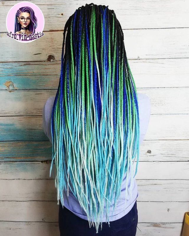 For this option, not a plain kanekalon, but an ombre is perfect. It is better to take the top to match your hair, and the lower part can be of any color.