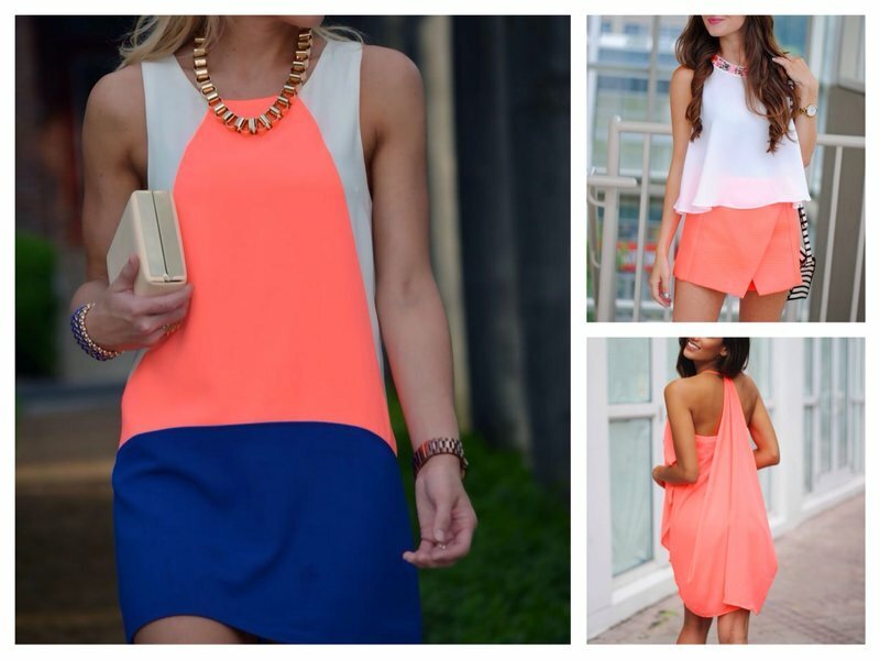 The most fashionable color "living coral" looks perfect, as an independent option in clothes, and in conjunction with other bright colors. It perfectly combines with rich neon yellow and no less popular mint nuance.