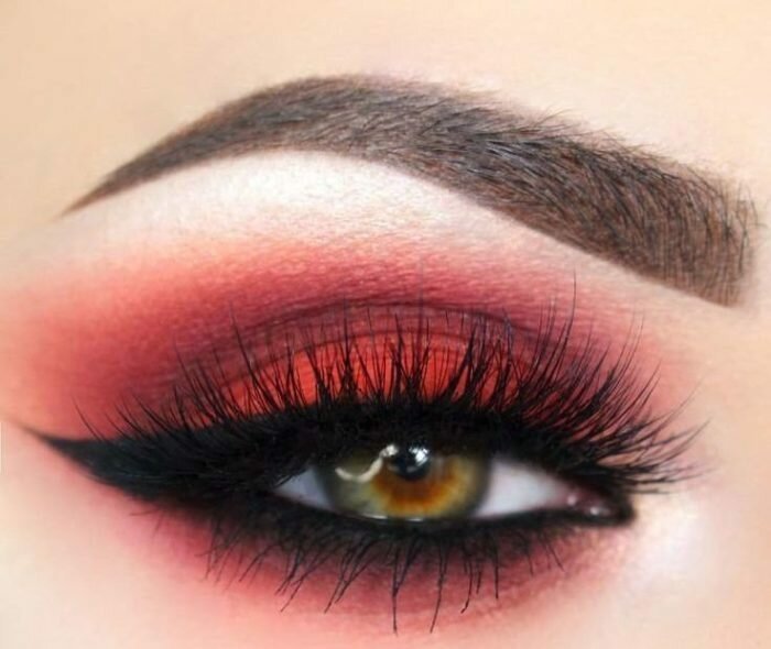 Red shadows.This color will emphasize the look very favorably, however, it must be used in combination with other shades - copper or metallic, because otherwise you can get the effect of tired eyes.