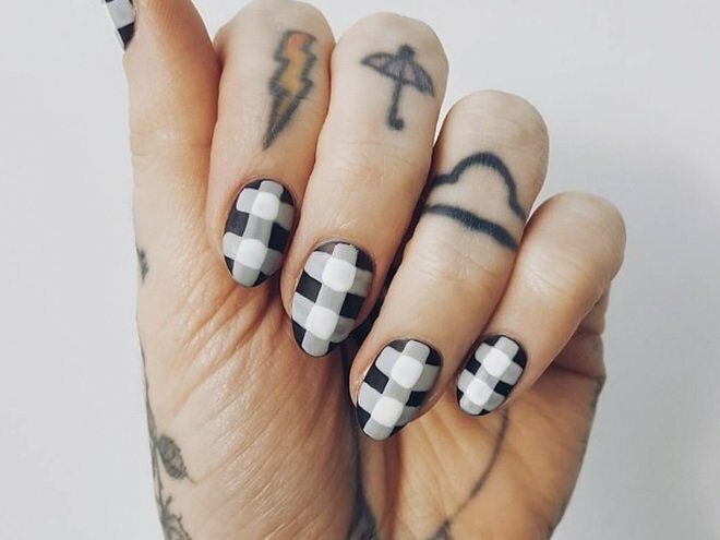 A cage or office manicure is also a fall-winter 2024-2025 trend. This is not only a wonderful combination with formal clothes, but also a comparison with the “warm blanket”, with the comfort of home. A cage can be completely diverse: Caledoni, Burberry, Royal Stuart, Black Watch, Border Tartan, Vichy, Glenchek, etc.