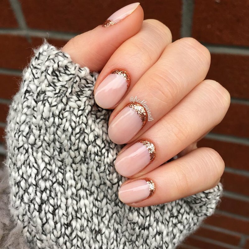- Nail designers offer interesting options with nude varnishes. They believe that delicate pastel colors can be perfectly combined with transparent glitter, in which the minimum number of “glitter”.