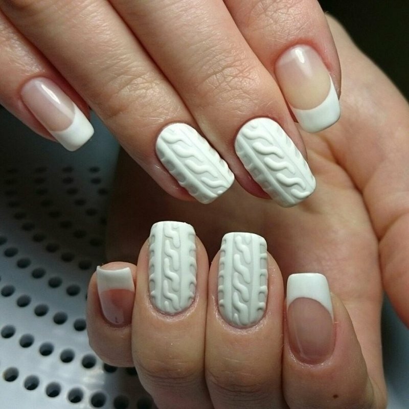 “Knitted” manicure is perfectly combined with a jacket and plain coating. He reminds me of knitting “pigtails” on a sweater. Of course, it refers to the cold seasons of the year - autumn-winter.
