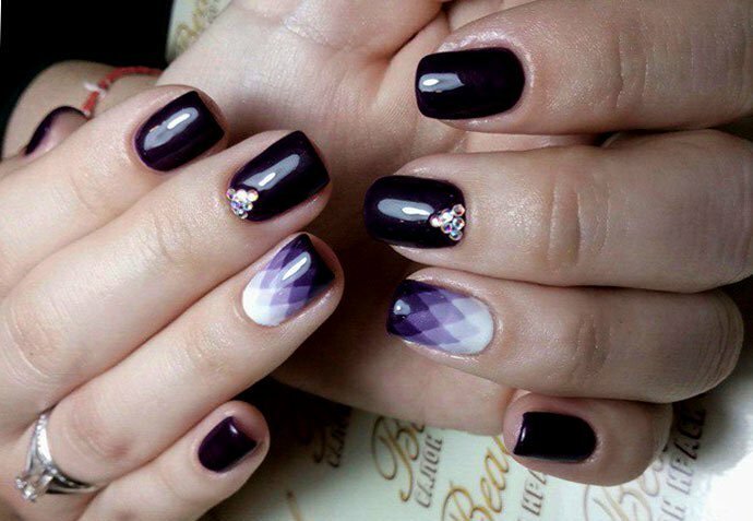 - Black varnish is recommended to be combined this year with white, of course. It is possible to create color drawings and plain patterns on its basis;