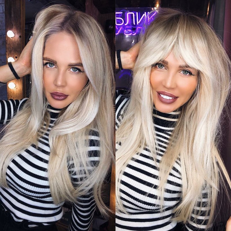The first to wear a false bang was Anna Khilkevich. True, subscribers immediately began to criticize the image, saying that she does not look like herself, looks older.