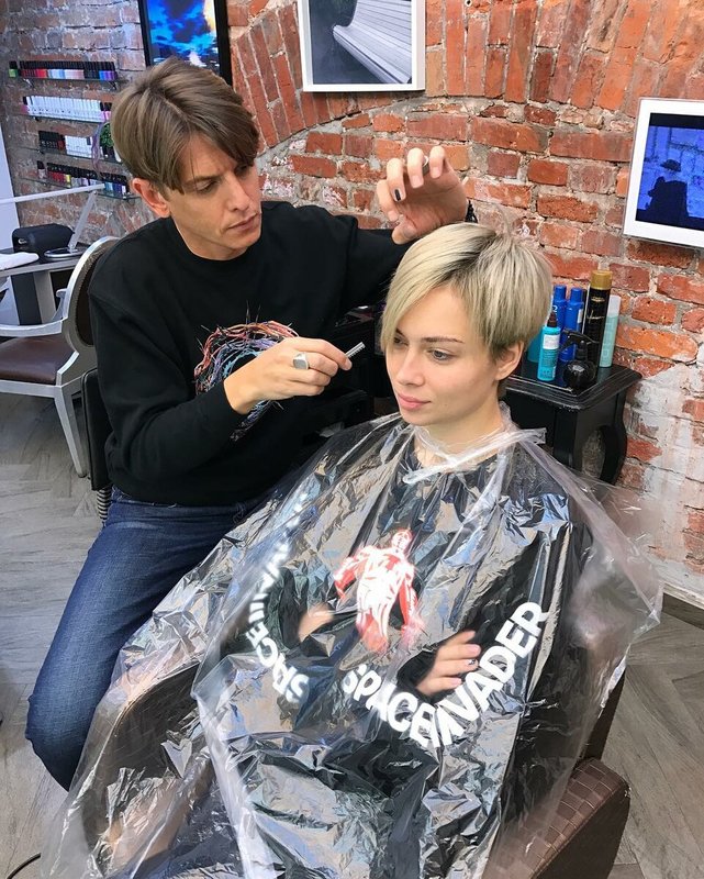 Well, when the hair is a short experiment with color - a simple task. In just a couple of hours, an experienced stylist friend Vladislav Lisovets turned Nastasya into a blonde.