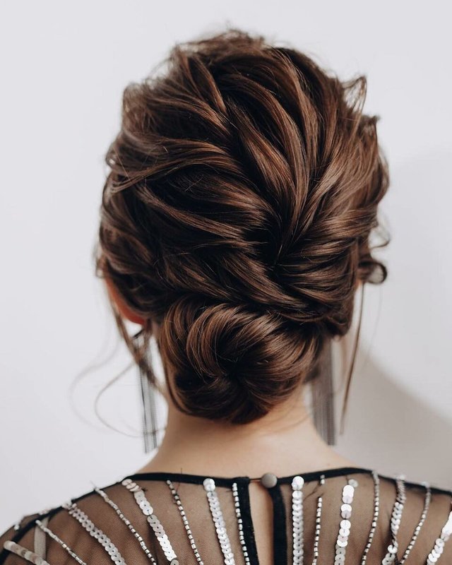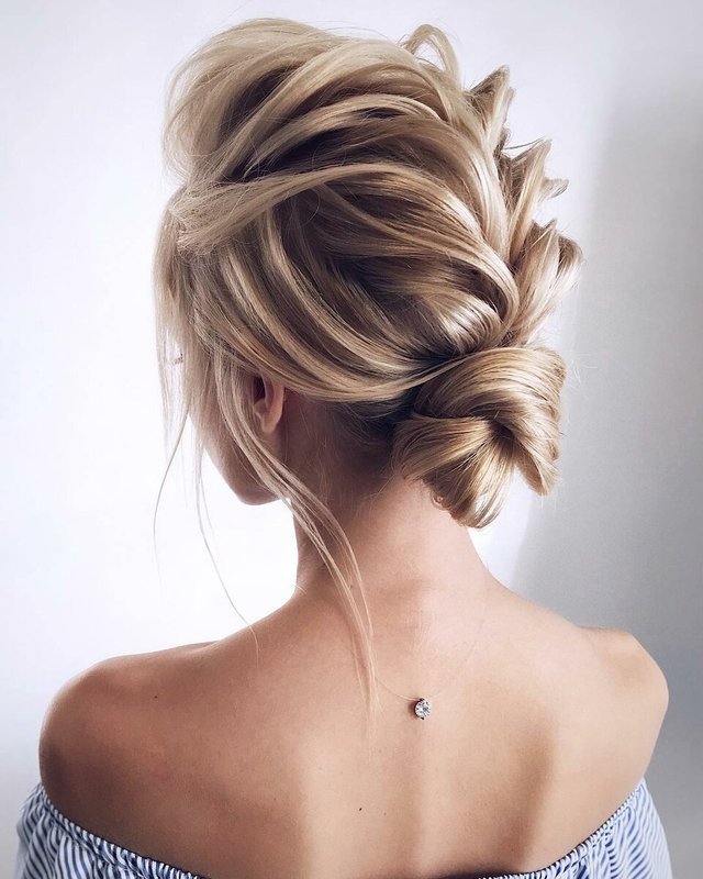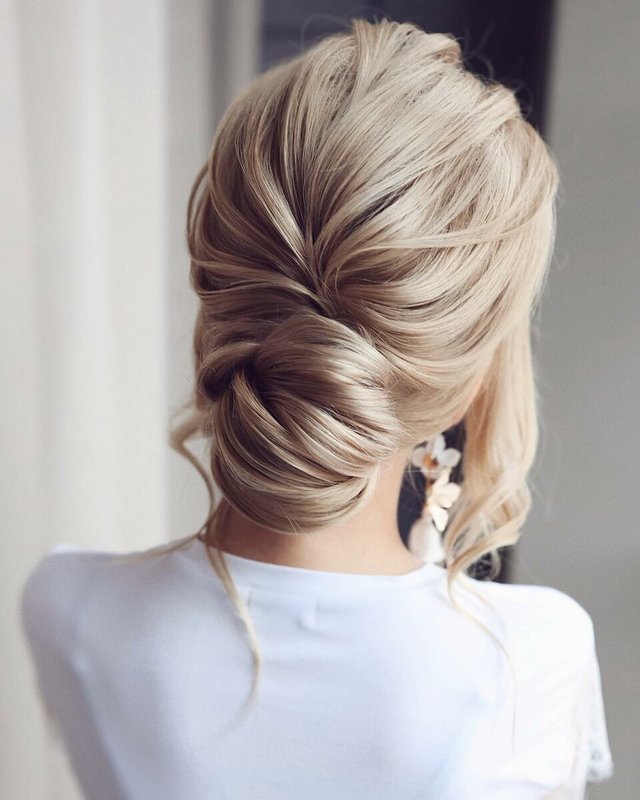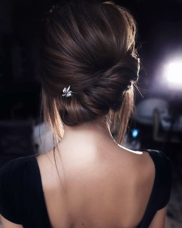 If you have chosen a wedding dress with a cut-out “boat”, on the straps or with an open back, you just need to collect hair. Otherwise, no one will see all this beauty. There are two main options for a fashionable hairstyle - low and high bun.