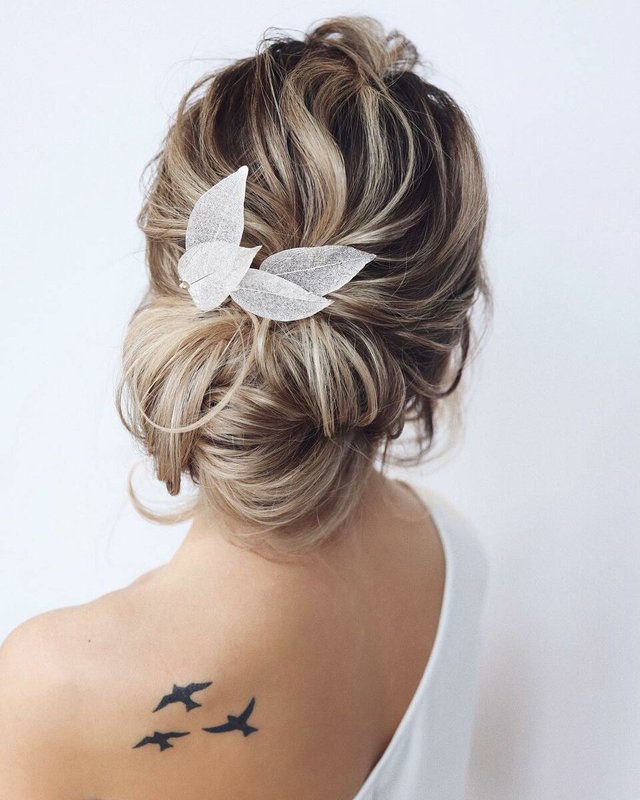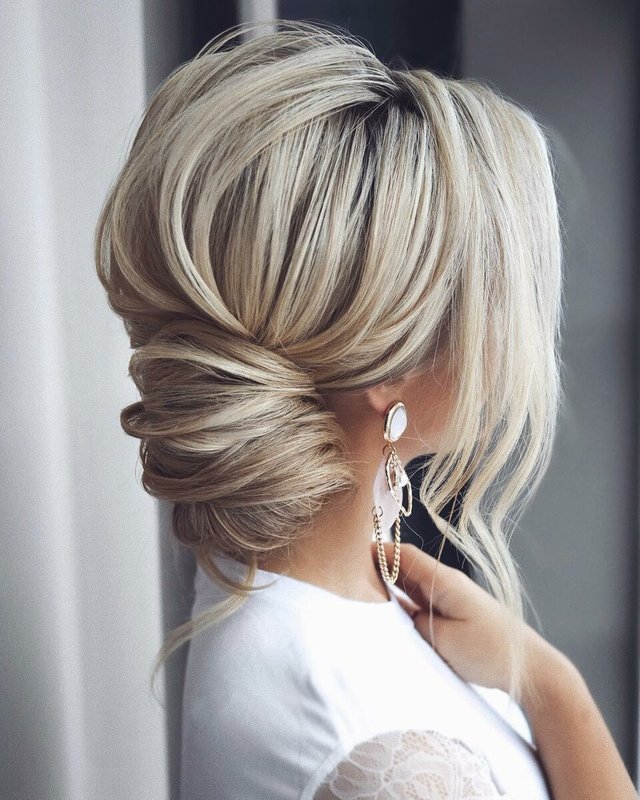 As a supplement, various hairpins, scallops, less often crowns and tiaras are used. If you are not a supporter of hair accessories, you can add large earrings to a low bun. In the trend are long models with stones and pearls of different colors.