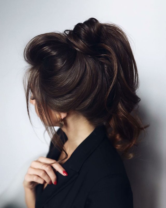 Today the trend is light and airy hairstyles. A high beam, as a rule, is collected from curls pre-wound onto a curling iron of medium diameter. Strands are released on the face, near the ears and behind, to give the image a slight negligence.