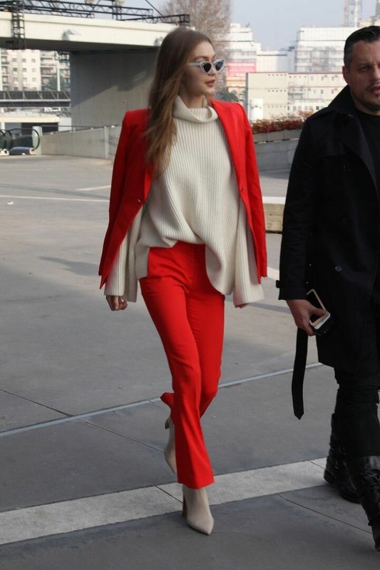 At the mention of a trouser suit, an option naturally comes to mind, which Victoria Beckham demonstrates. But we immediately said that Gigi adheres to his own style.