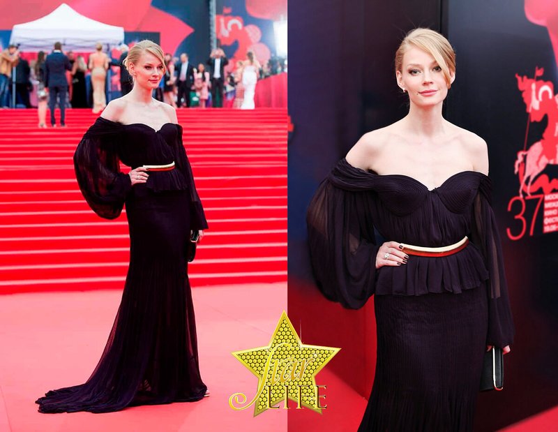 Svetlana is a happy owner of an ideal figure with sophisticated shapes. She knows her pluses and knows how to emphasize them favorably. For example, the actress often chooses dresses with bare shoulders.