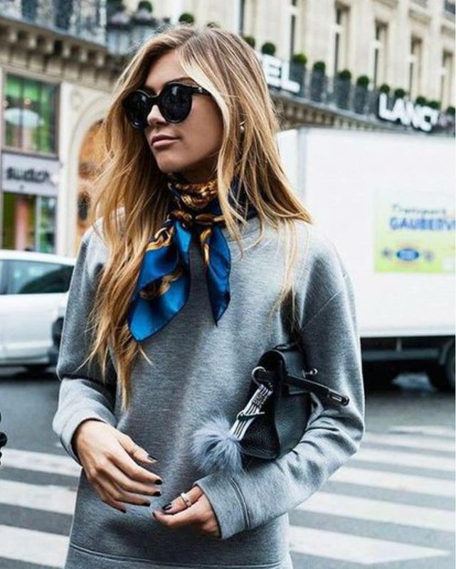 A scarf neatly tied around the neck goes well with a blouse, shirt, jacket and coat. Although today, fashionistas combine it with sweatshirts.