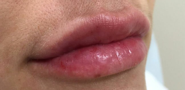 - Superficial injection. Insufficient gel insertion depth can cause seals. Also, the cause may be the special structure of the lips, which did not allow the acid to descend to a sufficient depth;