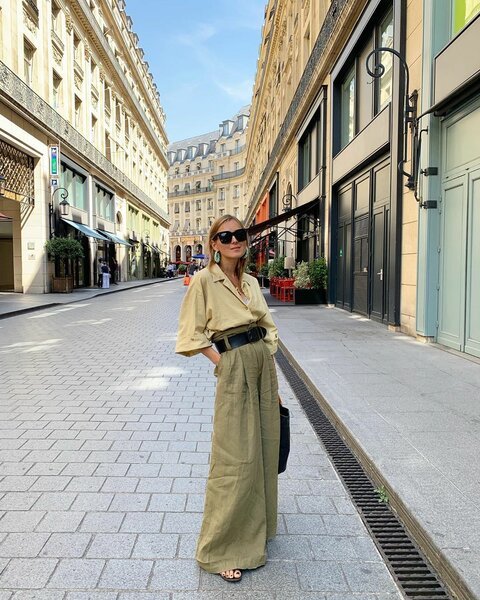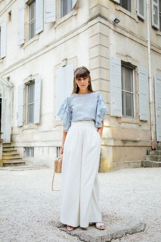 And finally, a linen top or tunic, which for some reason many consider the only suitable top in such trousers. In fact, such a kit will harmoniously look at the resort or will help out during the trip, when you are exploring the sights of the new city all day.