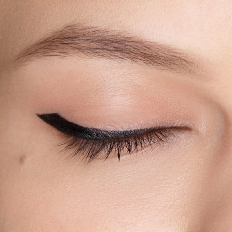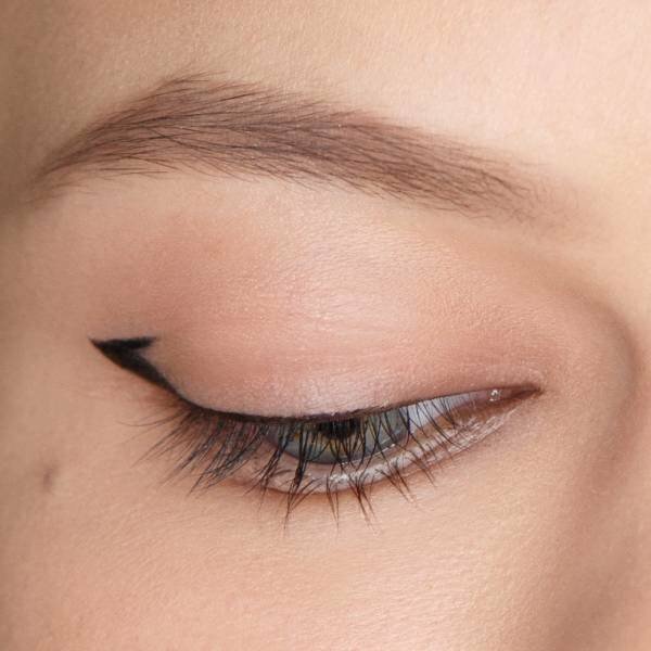 Step 2: drawing the base of the arrow. Using a black eyeliner or a soft pencil, draw a thin strip along the upper line of eyelash growth. It should expand smoothly from the inner corner of the eye to the outer, while the main increase should be in the middle of the eyelid.