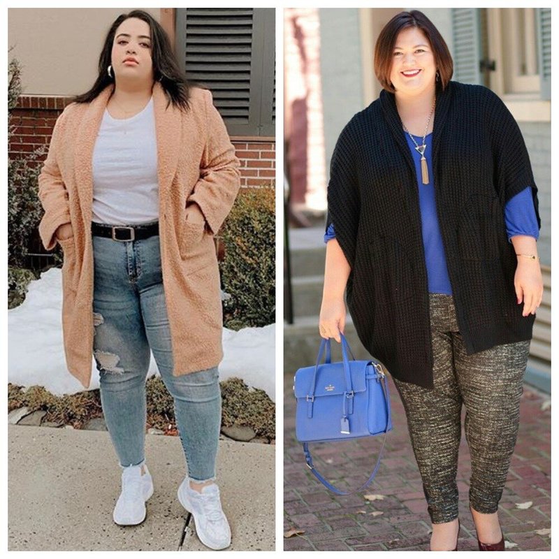 A cardigan is generally an indispensable thing for a full woman in the fall. It helps to make the image “rich”, looks elegant and hides the flaws of the figure.