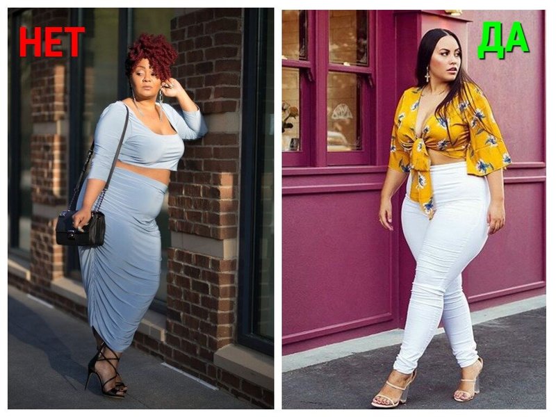 Most well-fed women have a similar problem - the bust becomes larger, heavier and, accordingly, sagging. Therefore, in such cases, it is not recommended to wear crop tops that open the lower part of the bust, which looks vulgar.