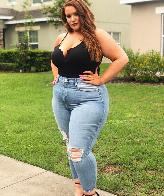 Chubby women in tight jeans love to wear heels.