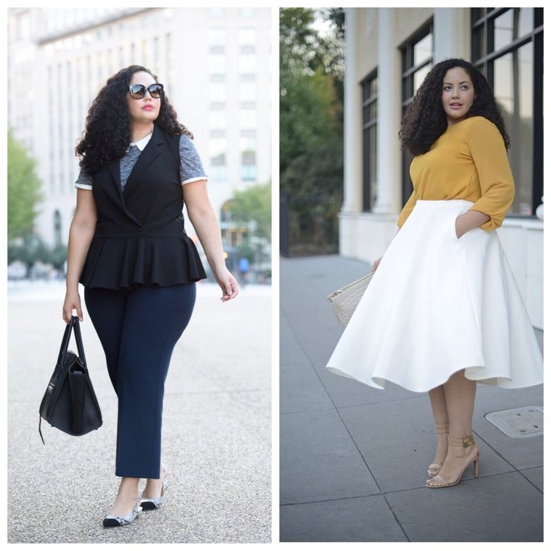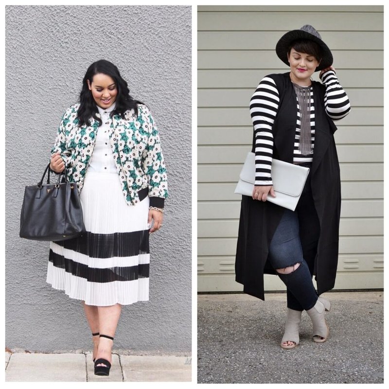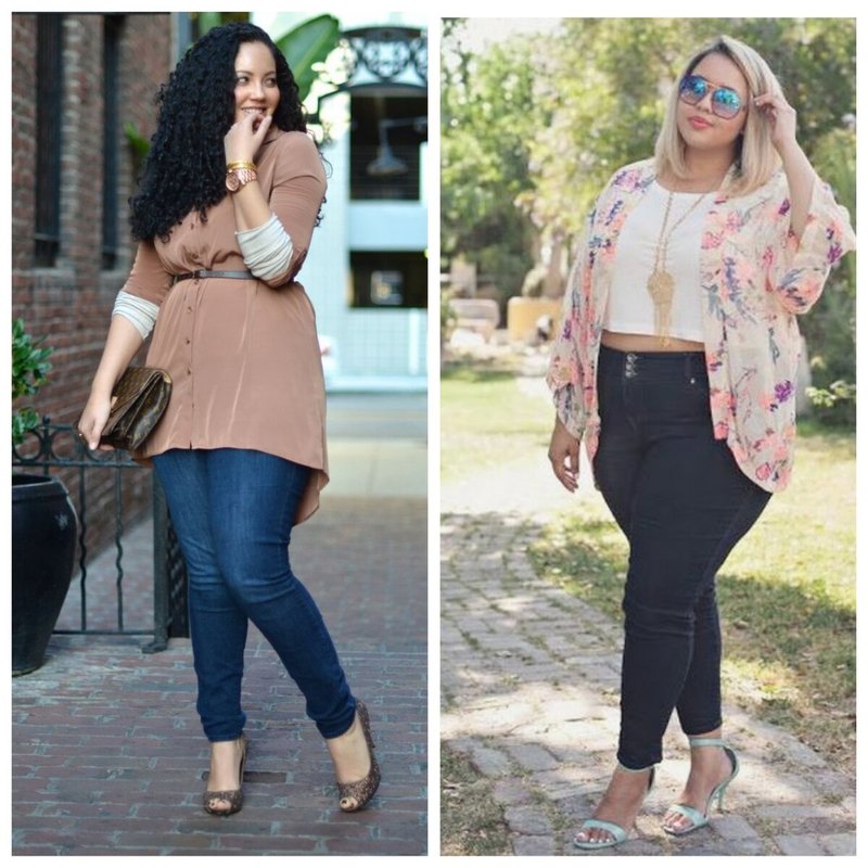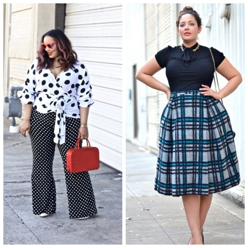 Balanced options look good on curvy girls, for example: a shirt with horizontal lines or color blocks and plain trousers / jeans.