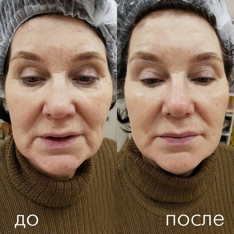 One session of hardware SMAS lifting and proper skin care after the procedure can rejuvenate the face by about 10 years. As a result, sagging tissues in the cheeks, eyebrows, eyelids are tightened, the skin frame is restored, and a sharper oval face appears.
