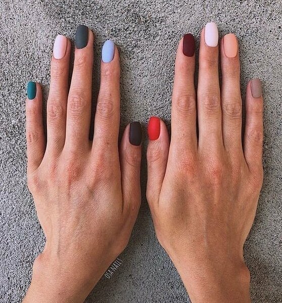 When you can not decide on either gamma or depth of tone, just rely on intuition.Remember what clothes you have in your wardrobe and paint nails for each blouse. And then ask the master to apply a matte top, because this option of manicure is in trend!