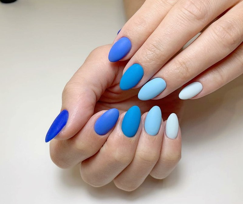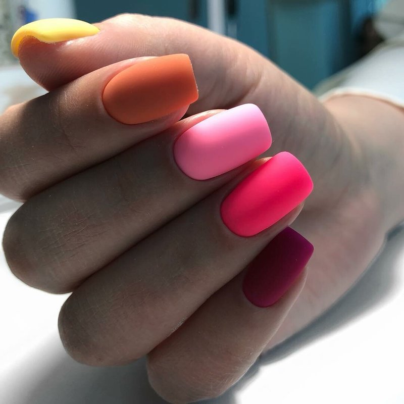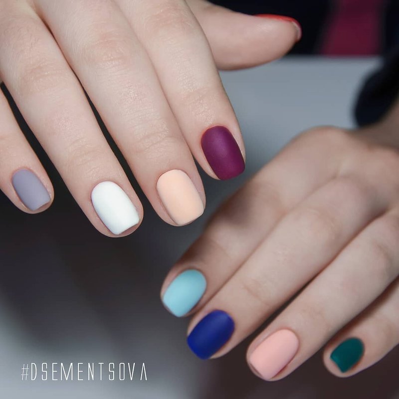 Colored matte nails, when varnishes of related shades are selected, look no worse than glossy ones. The main thing to remember is that it is much easier to spoil such a manicure, so it is better to wear gloves during cooking.