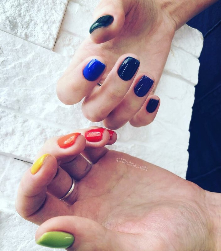 Summarize: color manicure can be made with a variety of shades of varnish. When choosing shades there is no need to follow any rules. But if you want to get not just bright hands, but a stylish image, it is best to pay attention to options for combining shades such as monochrome or related.