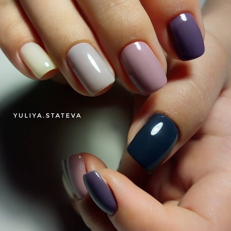 If you are going to combine different shades of varnishes, you can be guided by a number of rules: we combine warm tones with warm tones, cold tones with cold tones, we choose analog or contrasting shades.