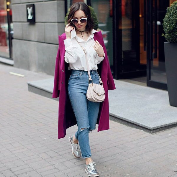 Do not be afraid to experiment with Mom’s jeans, with their help you can create many different fashionable and unique images. You can wear “mother's” jeans at any time of the year; this will not look out of place.