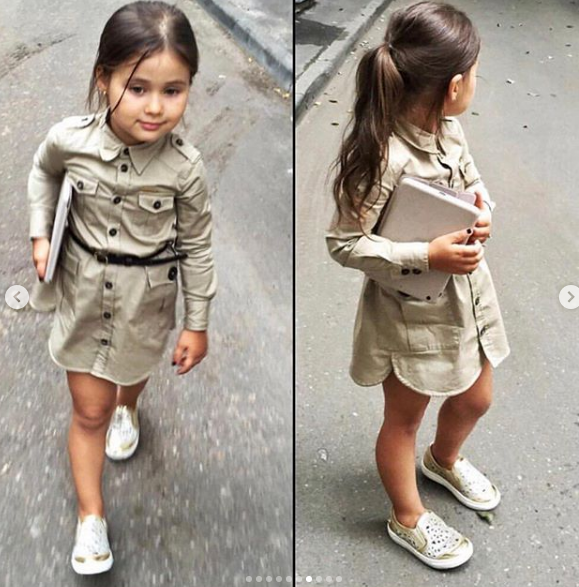 Ariela was a real little fashionista, with a huge collection of bags, shoes and jewelry. Many even then noted that the girl looks exactly like her star mom. Do you think this style is acceptable for a small child or is it better now? Today, in Ariela’s wardrobe, in addition to school uniforms, practical overalls, bright jackets and coats. No more glamor and imitation of the style of adolescents.