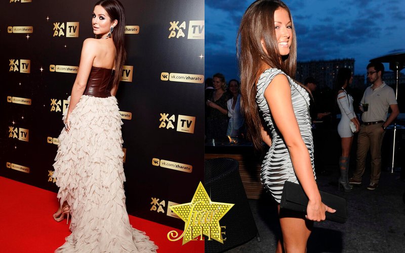 The Hollywood reception "look over your shoulder" Nyusha clearly adopted in the stars of world cinema. This pose favorably emphasizes the advantages of the singer's appearance.