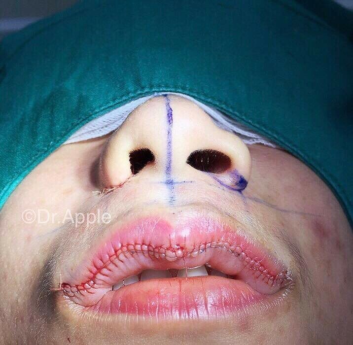 Who did the lip suturing?