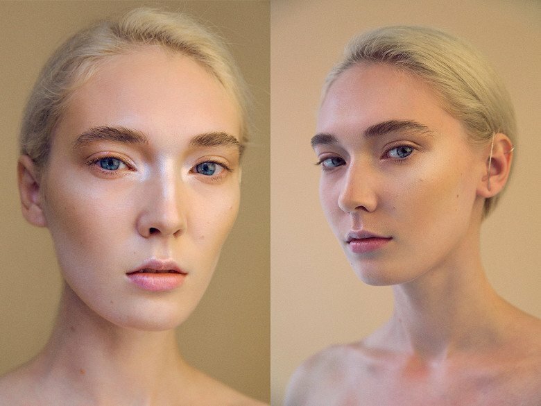 Busting with foundation or powder. The foundation and powder will help create a natural image only with proper use. Excessive amount of foundation or powder, as well as neglect of the quality of funds can make your makeup unnatural and rude. As an example, you can immediately notice how in the picture on the left the skin looks messy due to an excessively dense layer of foundation and powder. The girl's face on the right glows with freshness and naturalness.