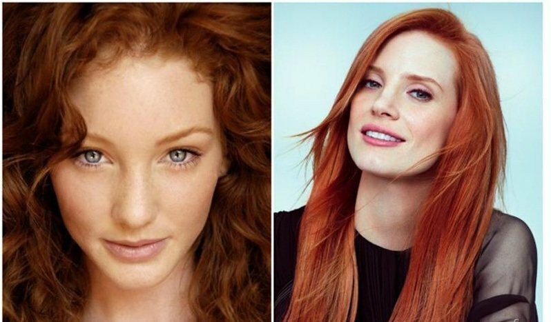 Natural makeup for redheads. Red-haired girls should avoid using shades of blue and purple. Makeup artists recommend giving preference to a golden and pastel palette. You can complete the natural look with the help of lipstick in warm and beige-pink shades.