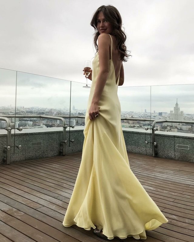 When going to any event, don’t stop at the classic dresses of black, red or gold color, by the way, the dress code of the latest “Heat” award was just that. It is quite possible to choose an evening dress of yellow saturated color.