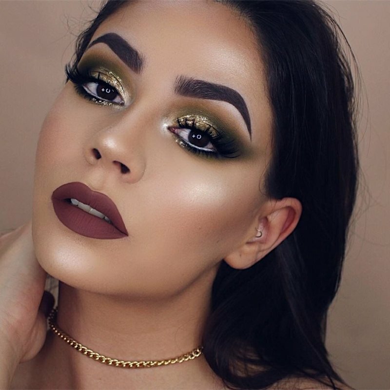 To create harmony and contrast when applying bright makeup to women withgreen eyesused red and purple shades of the palette. If the eyes are painted in brick color, then the lipstick is selected in the same tone or pale pink.