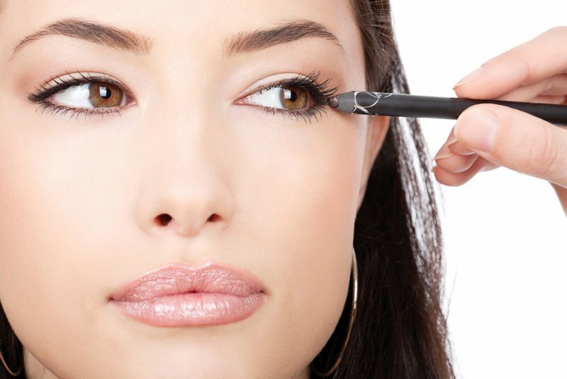 Step 2. Drawing the upper and lower eyelids.They are drawn in black pencil to give the woman's look expressiveness. The lines are also applied to the space between the eyelashes and the mucous membrane. After they shade.
