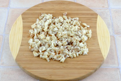 Étape 3 Couper le filet de poisson refroidi en très petits morceaux.